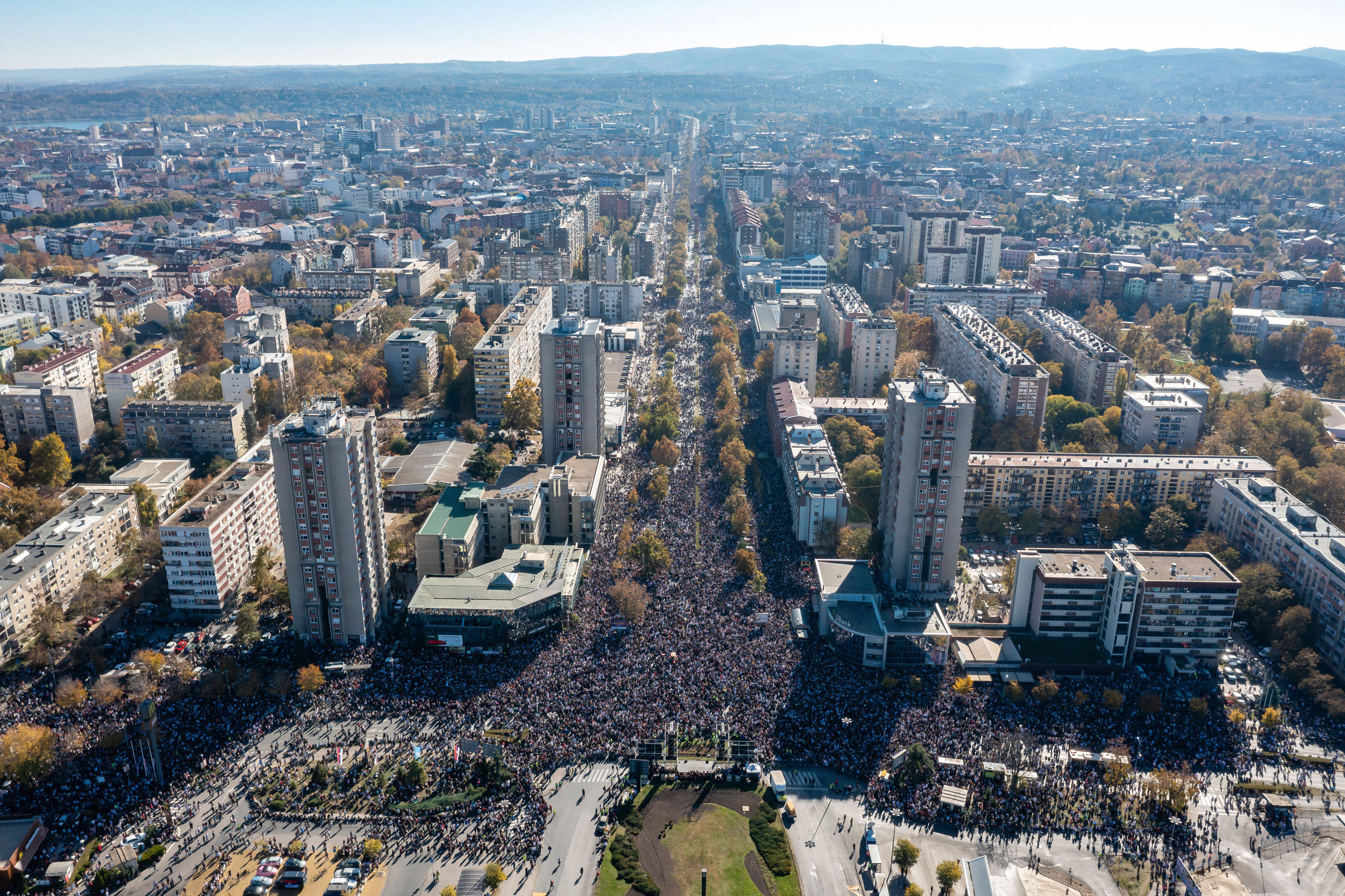 Rally to mark the first anniversary of the train station collapse, Novi Sad, 1 November 2025.