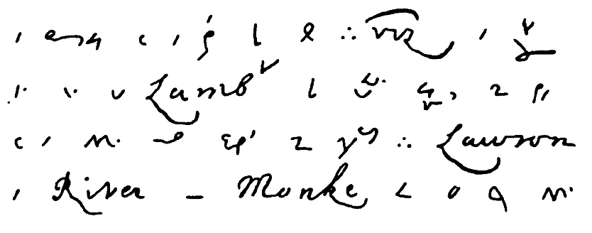In Samuel Pepys: The Unequalled Self (2002), Claire Tomalin calls what followed a ‘tragi-comedy’. Her account, which has become the standard narrative of the diary’s transcription, has Neville hiring an impecunious undergraduate, John Smith, to produce a readable version of Pepys’s diary – 1.25 million words, longer than Shakespeare’s complete works – for £200. What Neville’s uncle imagined would take a few months dragged on for three years, with Smith claiming that he often laboured ‘for twelve and fourteen hours a day’ to break Pepys’s code: an alphabet of symbols (a was ^, b a vertical stroke), but with some letters sharing signs, and vowels indicated either by their own marks or by the position of the next consonant, with special squiggles for common letter pairs and some whole words. Smith grandly styled himself Pepys’s ‘decipherer’, apparently unaware that Pepys had written the diary in Tachygraphy (‘swift writing’), a shorthand system that had once been popular with students and sermon note-takers, and was later used by Thomas Jefferson. Pepys had included a tachygraphy manual in the Bibliotheca Pepysiana, and Tomalin concludes that poor Smith ‘carried out the entire task without knowing that the key to the shorthand was in the library’. Loveman’s careful analysis of the transcripts suggests that this is almost certainly tosh: Smith made use of the manual from the start, but kept it quiet, probably to finagle a bit more money. He was twenty years old and already supporting a wife and child. For most of the 19th century, Smith would be the only one to read what Pepys actually wrote, and generations of readers had little choice but to assume his transcription was accurate.