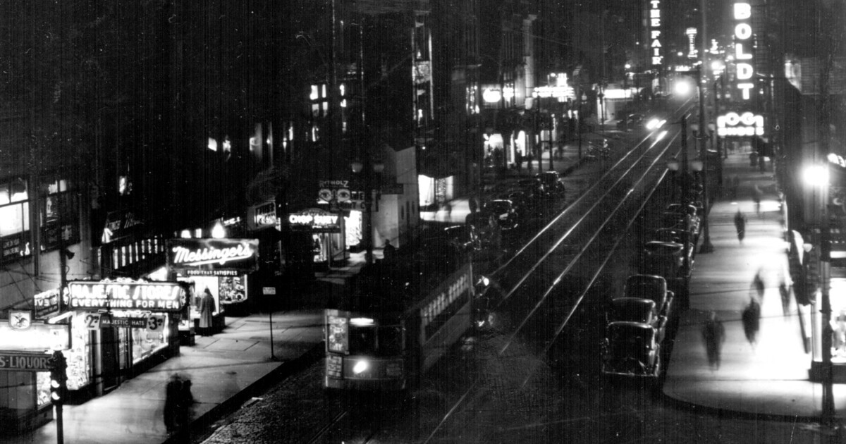 What’s unfathomable is how he does it: wherever Pynchon drops his pin, he seems to know the place, and the time, in every detail, with street-level precision. How does he know that if a detective in Chicago in 1932 pulls a bottle out of his desk drawer it’s going to be a pint of Old Log Cabin, but that if he’s in Milwaukee it’ll be Korbel brandy? How does he have time to learn about the Milwaukeean shoe stores that used fluoroscopes to X-ray a customer’s foot for the perfect fit? I wish I could see his library. I imagine shelf after shelf devoted to early studies of Central Europe, beginning with Paget’s Hungary and Transylvania; with Remarks on Their Condition (1839). I imagine tabulated volumes on Wisconsin milk production, boxfuls of issues of the Milwaukee Journal from the 1930s, playbills, flyers, stacks of faded photographs of movie palaces and ballrooms. And that’s not to mention his record collection, which seems to include performances by every known vocalist or band member who passed through Milwaukee and Chicago at the time. All on the original shellac?